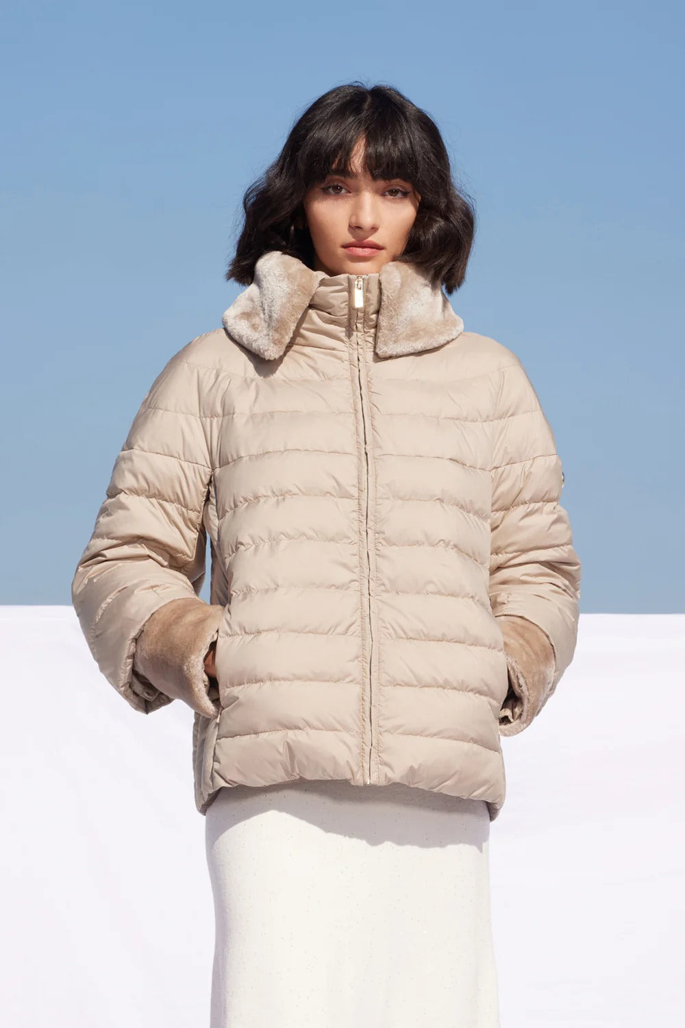 Madzerini-Geacă de damă cu două fețe , culoare stucco, B325R-216