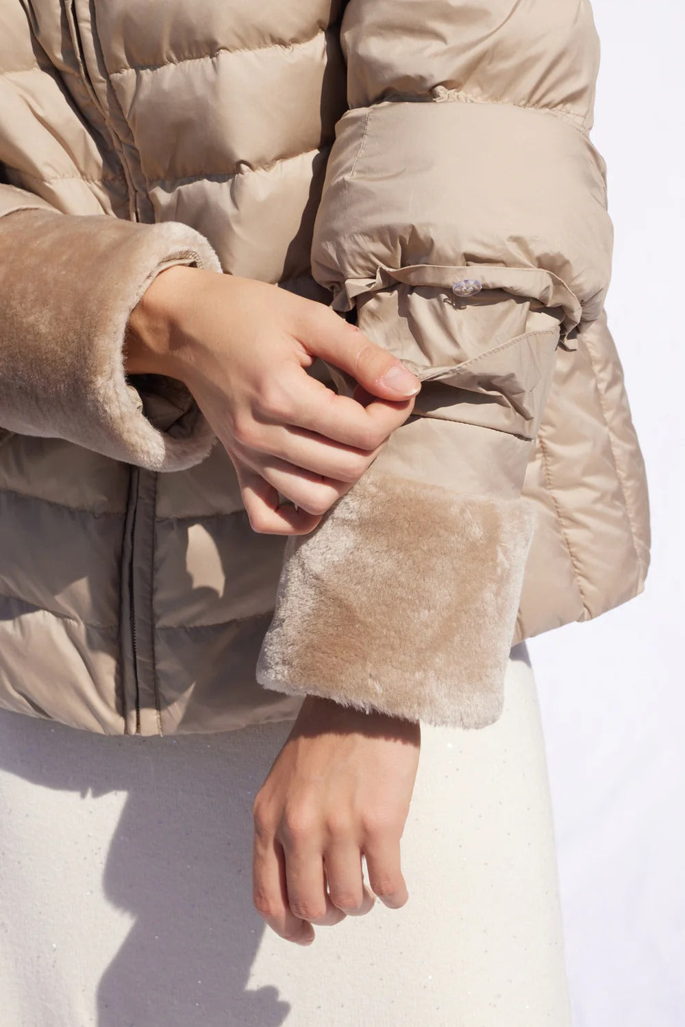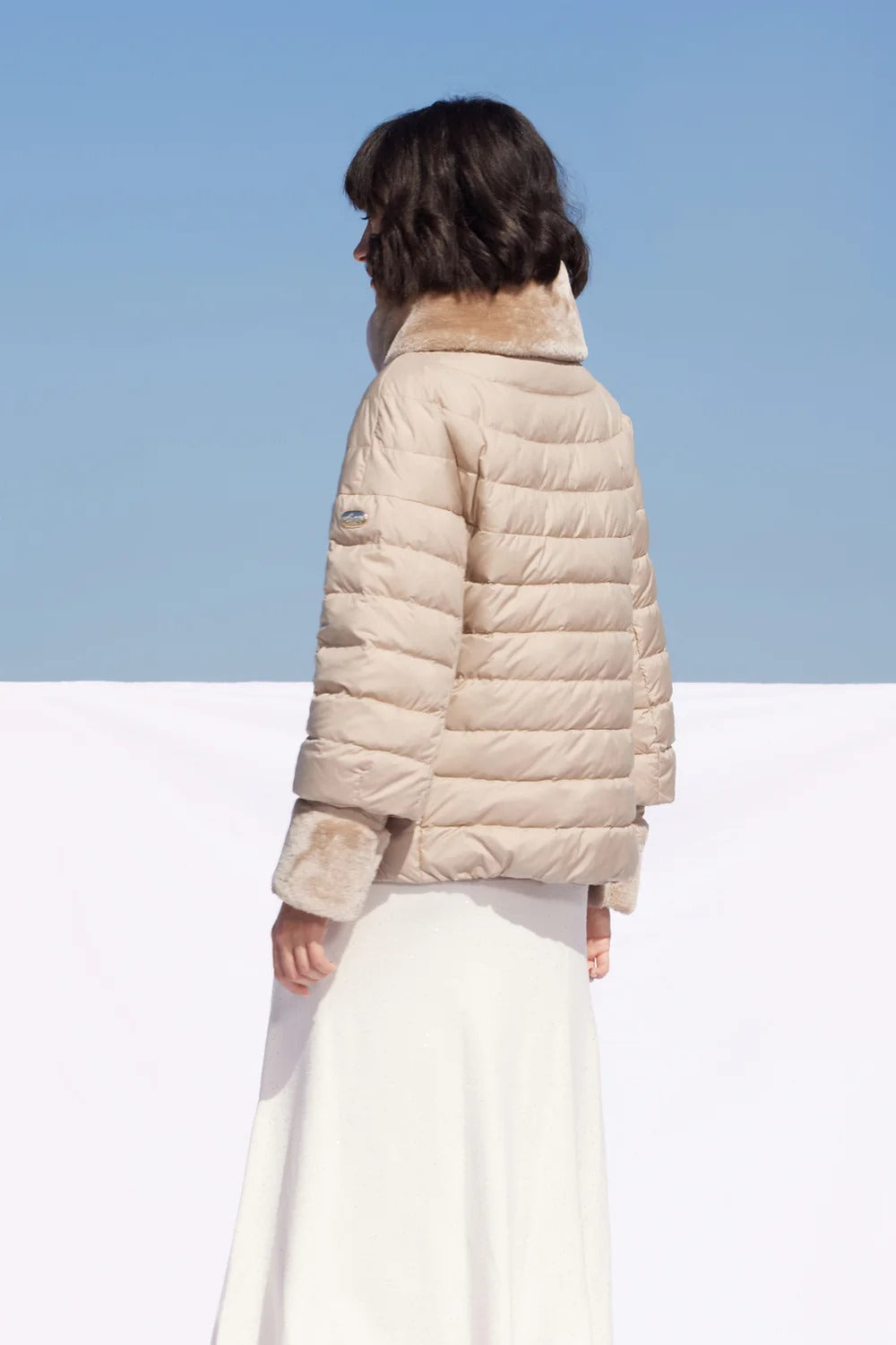 Această geacă combină eleganța contemporană cu performanța termică a pufului natural, oferind confort și protecție în sezonul rece. Detaliile rafinate din blană artificială adaugă un plus de stil și textură, păstrând în același timp o abordare etică și modernă.