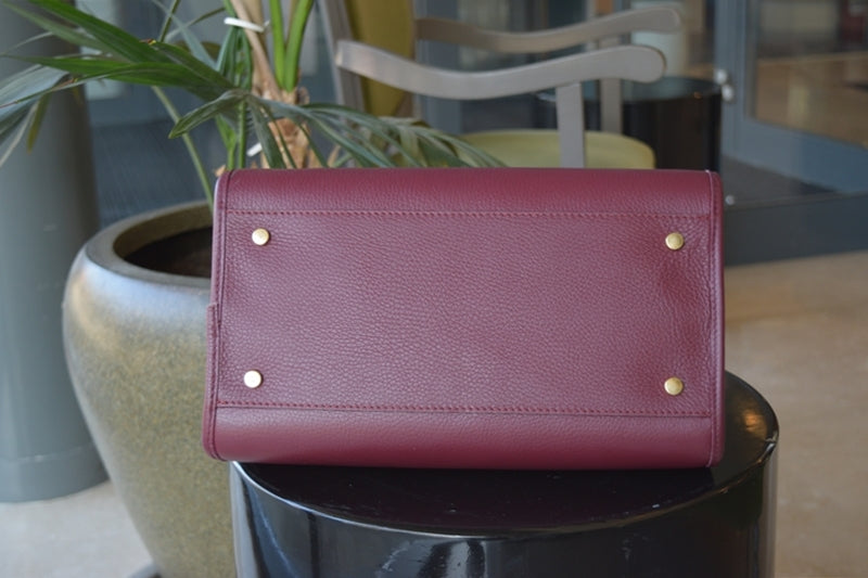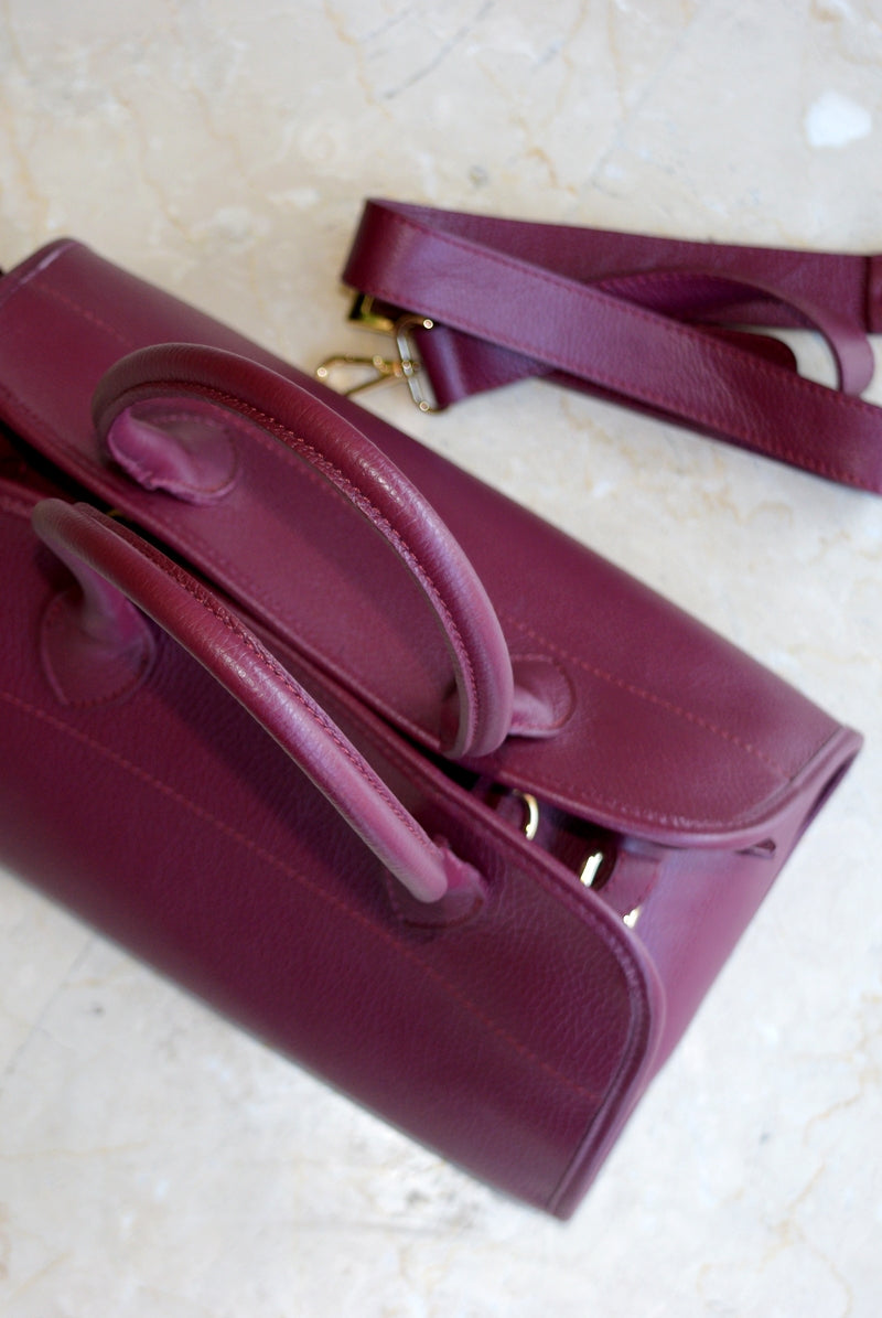 Geanta pentru femei ,culoare vișinie, este fabricată din piele naturală de înaltă calitate. Are 1 compartiment cu buzunar interior cu fermoar, si unul practic pentru telefonul mobil. Geanta se închide cu fermoar. Elementele metalice sunt aurii. Poate fi purtată în mână sau ca geanta crossbody. Acest model nu are căptușeală. Acest model are un stil vintage. Aceasta este o geantă medie cu spațiu generos pentru toate lucrurile dvs.