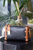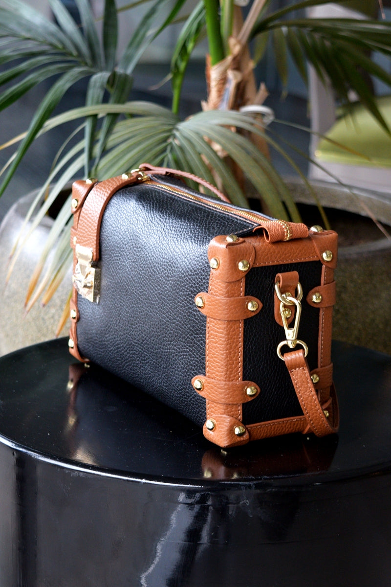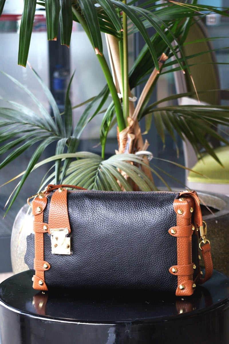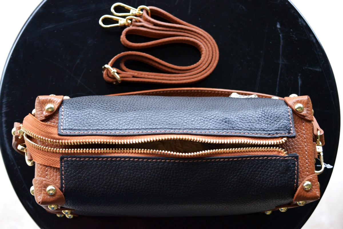 Geantă de damă din piele, negru-maro