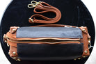Geantă de damă de culoare negru-maro, fabricată din piele de înaltă calitate. Geanta are 1 compartiment cu interior căptușit și dispune de două buzunare: un buzunar pentru telefon și un buzunar mic cu fermoar. Prezintă închidere cu fermoar metalic la interior și închidere prin clipsare la exterior, deține elemente metalice de culoare aurie. Dispune de un cordon lung care permite purtarea acesteia ca și geantă crossbody.