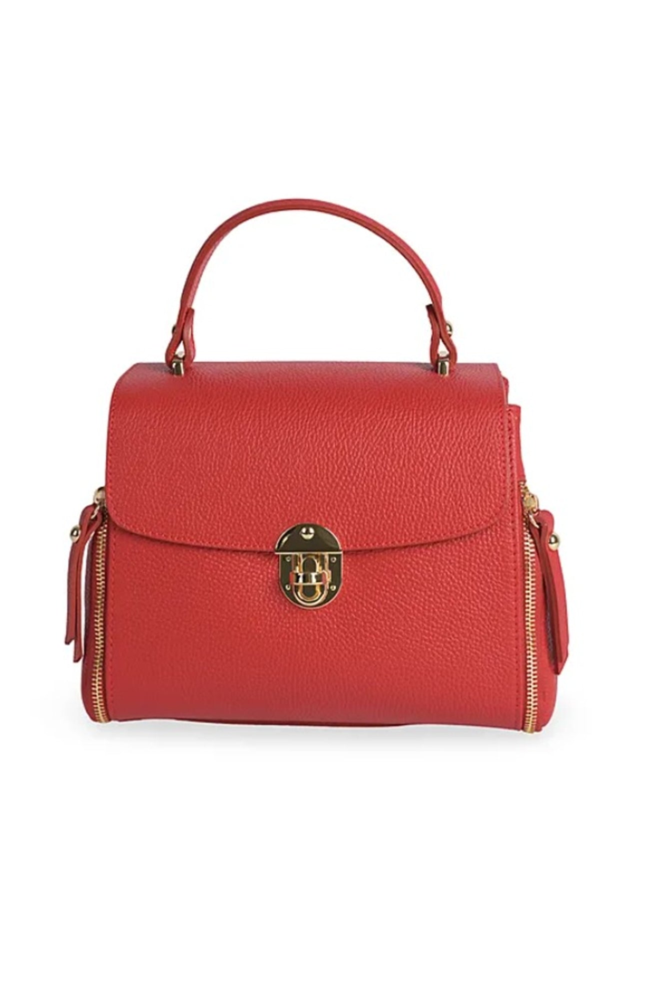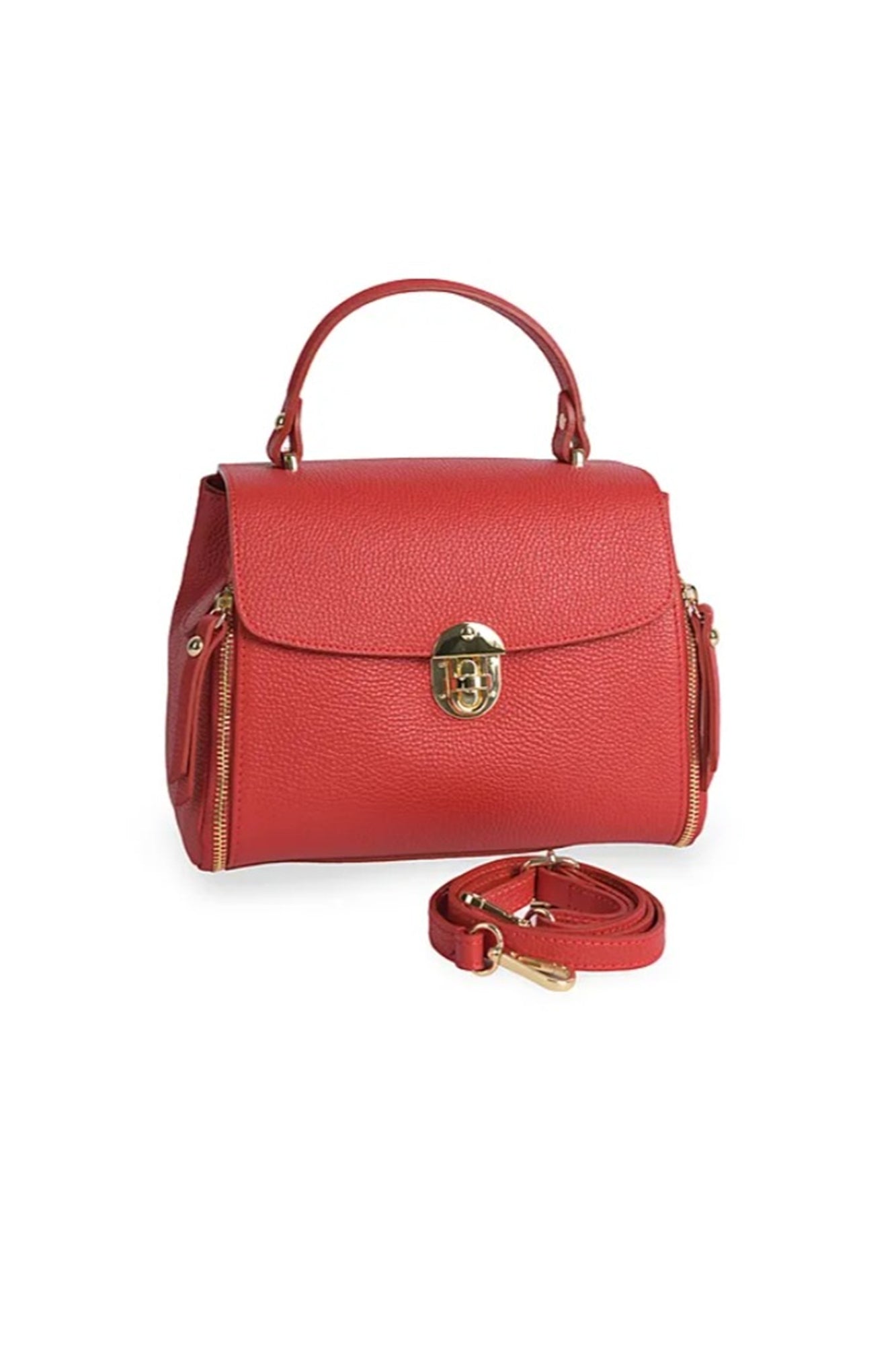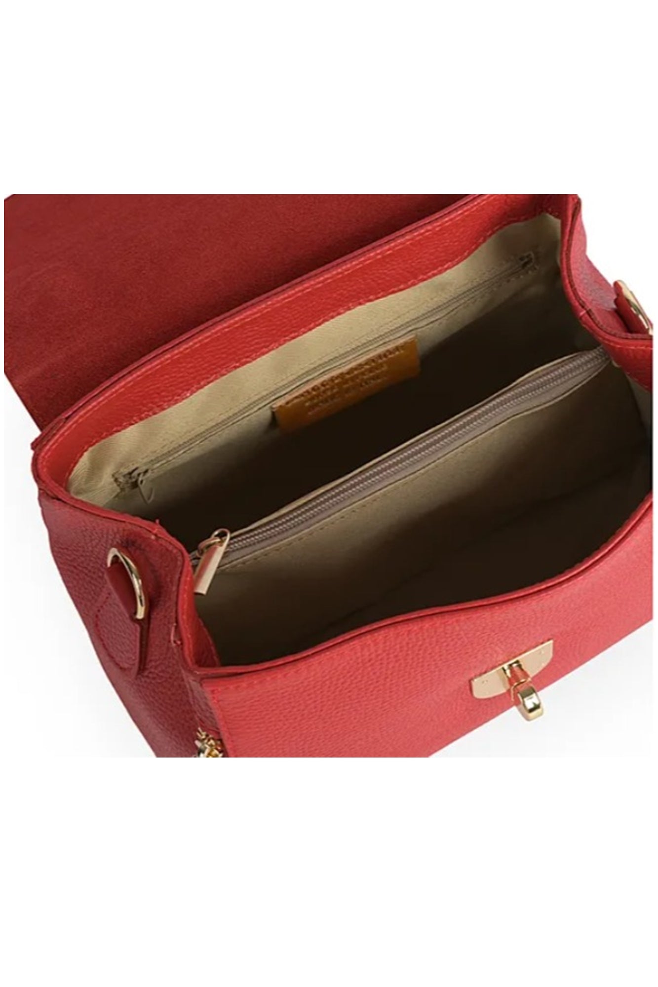 Geanta pentru femei VERA ITALY "Dalira", de culoare rosie, este fabricată din piele naturală de înaltă calitate în Florența, Italia. Are 3 compartimente cu un compartiment median cu fermoar. Are un buzunar interior cu fermoar. Are un buzunar practic pentru telefonul mobil. Geanta se închide cu cataramă metalică, clapă. Elementele metalice sunt aurii. Poate fi purtata în mână, Poate fi purtata ca geanta crossbody. Dimensiuni: 24 x 18 x 9 cm (aproximativ). Lungimea curelei lungi crossbody: 127 cm. Geantă autentică italiană din piele.