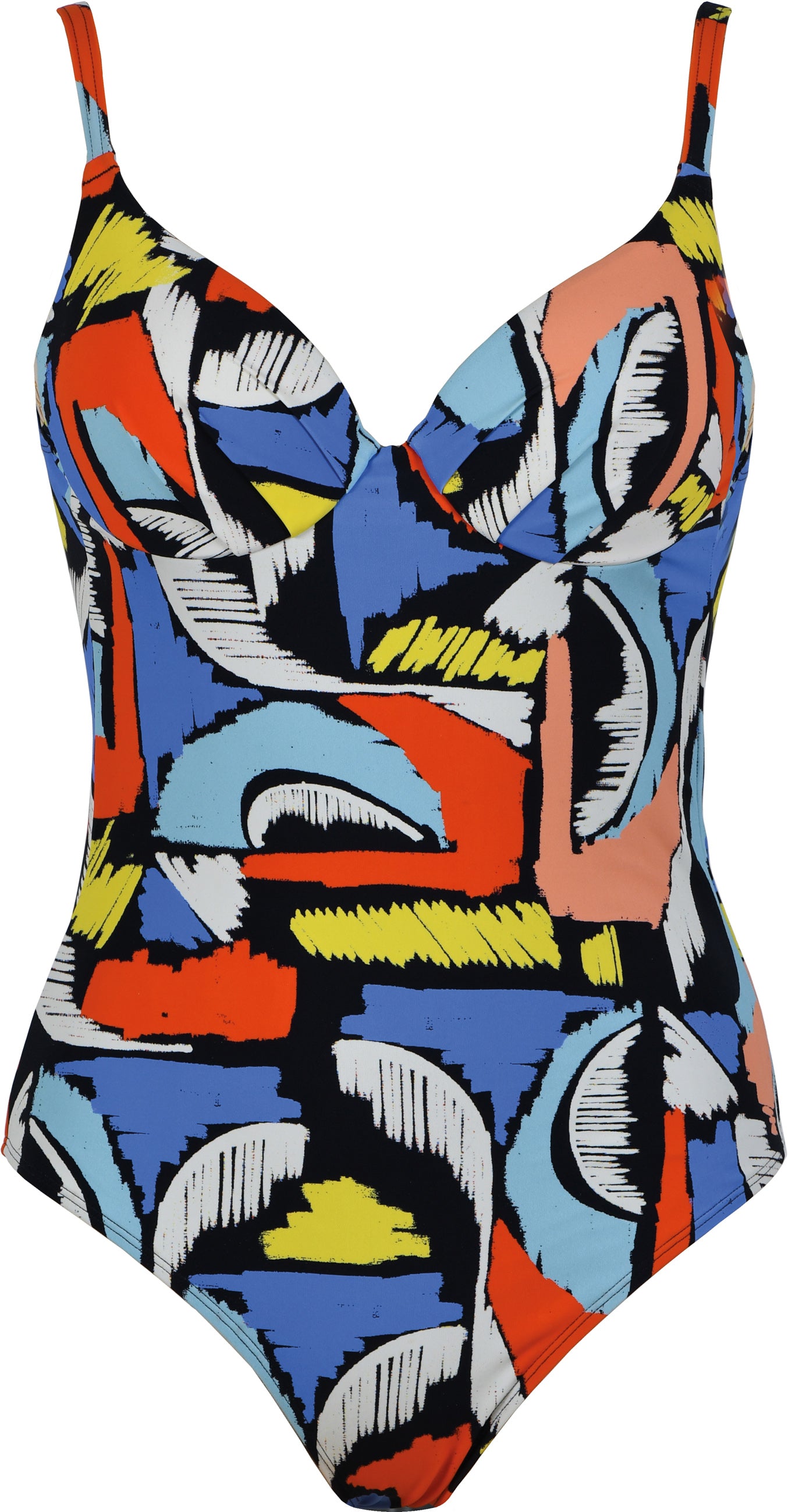 · Această piesă întreagă din colecția Beautiful Beaches de la Naturana Beachwear impresionează prin imprimeul său grafic plin de viață, cu un vibe tineresc și modern. Croiala inteligentă accentuează armonios formele corpului, în timp ce cupele buretate și armătura integrată modelează bustul și oferă un decolteu feminin și atrăgător. Bretelele mai late adaugă un plus de susținere și confort, făcând din acest costum alegerea ideală pentru o zi relaxantă la plajă sau o sesiune de înot fără griji.