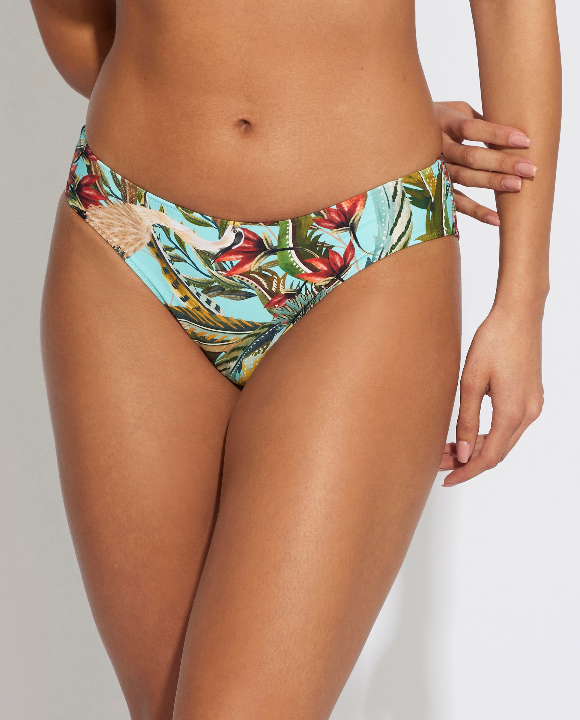 · Slip de bikini midi cu croială clasică. Acest design spectaculos, cu tonuri vibrante, inspirat de flora și fauna sălbatică, reflectă exuberanța și vitalitatea naturii tropicale sălbatice.