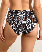 · Slip de bikini cu talie înaltă, cu croială clasică. Lasă-ți personalitatea să strălucească cu acest model, în care fiecare detaliu al imprimeului spune o poveste despre culoare și eleganță.