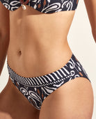 Slip de bikini cu talie înaltă și croială clasică. Lasă-ți personalitatea să strălucească cu acest model, în care fiecare detaliu al imprimeului spune o poveste despre culoare și eleganță.