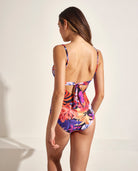 ·        Costum de baie pentru femei cu decolteu pătrat. Cu cupă interioară intarita, fără armătură și bretele încrucișate reglabile. Cu un imprimeu floral- tropical, plin de culori strălucitoare, care evocă spiritul sărbătorilor.